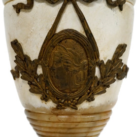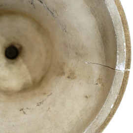 Lampada in alabastro e gesso con applicazioni in metallo dorato, altezza cm 39 (difetti e restauri)