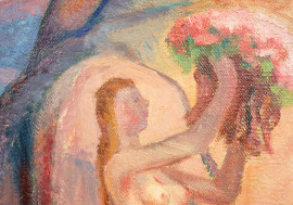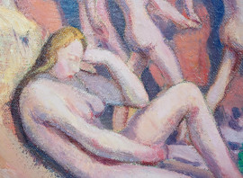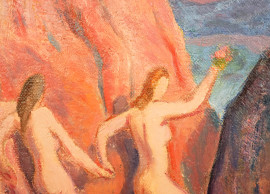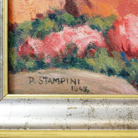 Le Vergini delle rocce, olio su tela, firmato e datato P. Stampini 1945, cm 53,3x49, entro cornice