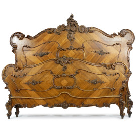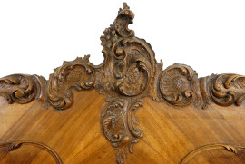 Letto in legno di noce intagliato con decori a motivi vegetali e floreali, inizi XX secolo, misura max cm h 168x202