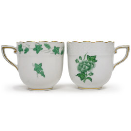 Lotto composto da due tazzine con piattini ed un piccolo vassoio in porcella, Herend, XX secolo, (difetti)