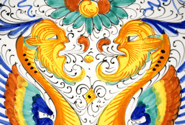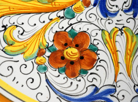 Lotto composto da un centrotavola ed un piatto in ceramica policroma, manifatture diverse, XX secolo, diametro max cm 40