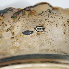 Lotto composto da un piattino, una vaschetta a forma di conchiglia e due cucchiaini in argento, XX secolo, diametro max cm 17,5, peso gr.264