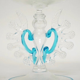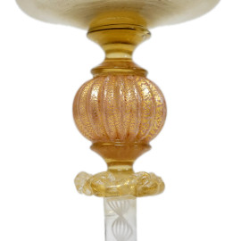 Lotto composto due calici in vetro soffiato di Murano, XX secolo, cm h 24, (difetto)