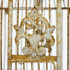 Lotto di due gabbie per uccelli in metallo dipinto, XX secolo, cm h max 40, (difetti)
