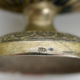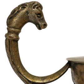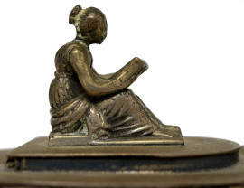 Lucerna in argento, con corpo baccellato, figura femminile che legge alla sommità, presa a forma di testa di cavallo, manifattura italiana, prima metà del XX secolo, cm 10x15, peso gr. 225 circa