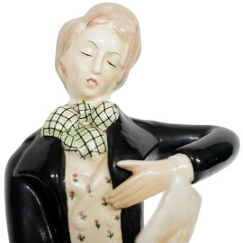 Massimo Quaglino (1899-1982), Lenci, Torino, 1930 ca, Coppia di innamorati, in porcellana policroma, altezza cm 30