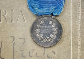 Medaglia al valor militare con diploma a stampa "Alla memoria di...", datato 19 gennaio 1918, cm 47.5x31 (compresa cornice)