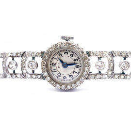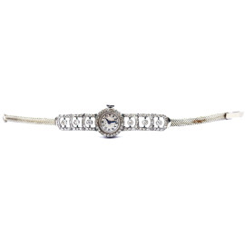 Orologio da donna in platino e oro bianco 750 con brillantini ct 0,1 circa cadauno, gr. 20,5
