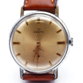 Orologio da polso Zenith, con cassa in acciaio e cinturino in pelle, diametro cm 3,7 (meccanismo da revisionare)