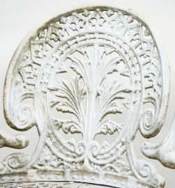 Panchina da giardino, in ghisa laccata bianca, XX secolo, cm h 82, lunghezza cm 133, (difetti)