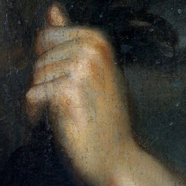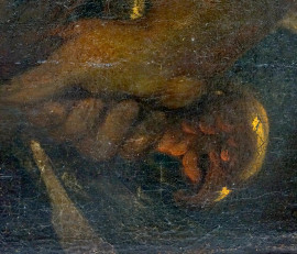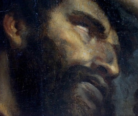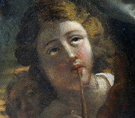 Pittore del XVII secolo, Ritratto in veste di Davide con la testa di Golia, olio su tela, cm 101x81, entro cornice.