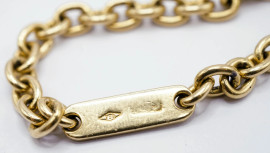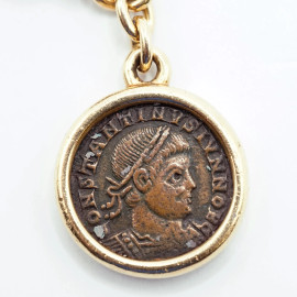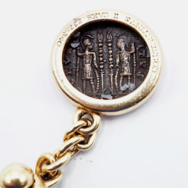 Portachiavi Bulgari in oro 750 con moneta raffigurante Costantino II, incisione sul retro "Costantinvs II Caes 337-340", cm 18.5, peso gr. 18.3