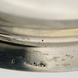 Portafiori in argento e vetro, manifattura italiana, XX secolo, cm 11x15,5, peso gr. 145, (portafiori in vetro non pertinente, difetti)