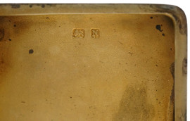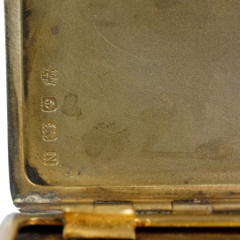 Portasigarette in argento e smalto, Inghilterra, Birmingham, William Neale Ltd, prima metà del XX secolo, cm 8x5,8x0,6, peso gr. 77