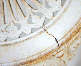 Quattro sedie da giardino, in ghisa laccate bianche, XX secolo, (difetti)