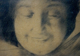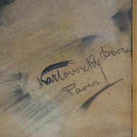 Ritratto di donna con cappello, matita su carta, firmato Karlovszky, cm 36x29, entro cornice (difetti sulla carta)