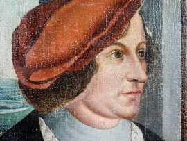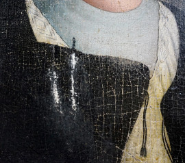 Ritratto d'uomo con cappello, olio su tela, cm 38,5x31, XIX secolo, entro cornice, (restauri)