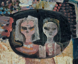Şadan Bezeyiş (1926 - 2017), Volti, olio su cartone, firmato, cm 50x35, entro cornice