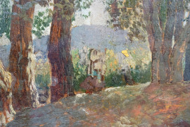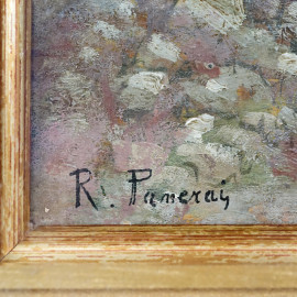 Scorcio di bosco, olio su tavoletta, firmato R. Panerai, cm 18x27,5, entro cornice