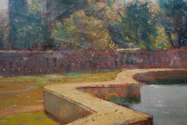 Scorcio di villa, olio su cartone, cm 40x29,5, firmato Bartoli, entro cornice