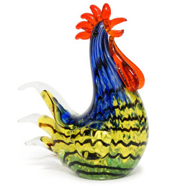 Scultura a forma di gallo in vetro soffiato di Murano, XX secolo, altezza cm 19