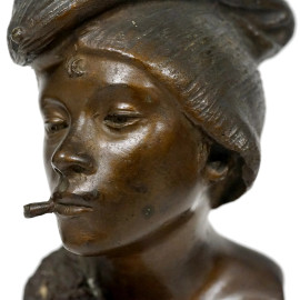 Scultura in bronzo raffigurante uno scugnizzo, base in marmo, firmato A. D'Orsi, cm 19,5