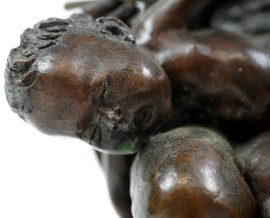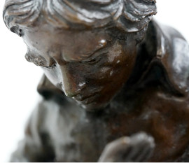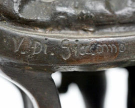 Scultura in bronzo rappresentante "Jenner inocula il vaccino del vaiolo al figlio", firmato V. di Giacomo, su base in marmo, h cm 24