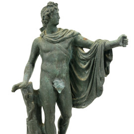 Scultura in bronzo rappresentante L'Apollo del Belvedere, su base in marmo, altezza cm 31