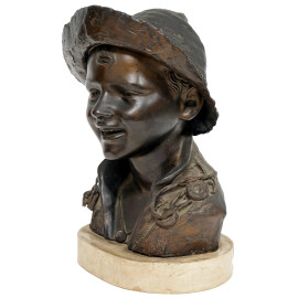 Scultura in bronzo rappresentante uno "scugnizzo", firmato de Martino, base in marmo, altezza cm 31,5