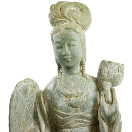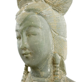 Scultura in giada raffigurante Guanyin con ventaglio, manifattura orientale, XX secolo, altezza cm 120