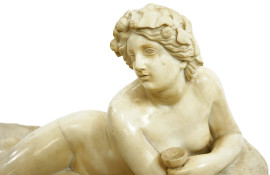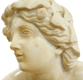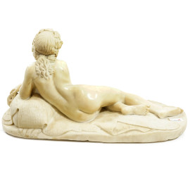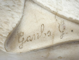 Scultura in marmo bianco rappresentante una baccante, firmata Gamba G., da un modello di Luigi Bienaimé, cm 42x80