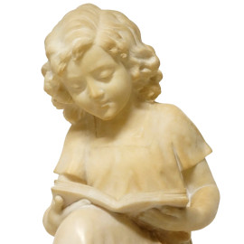 Scultura in marmo raffigurante una bambina che legge, firmato A. D'Orsi, altezza cm 49