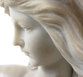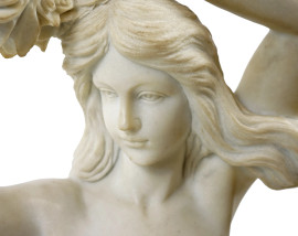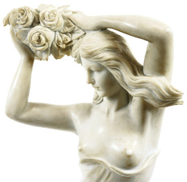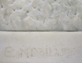 Scultura in marmo rappresentante una fanciulla con fiori, firmato E. Morillon, altezza cm 90