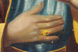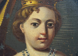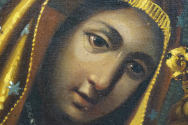 Scuola coloniale dell'inizio del XX secolo, Madonna nera con il Bambino, olio su tela, cm 64,5x51,5, entro cornice