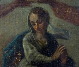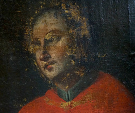 Scuola italiana del XVIII secolo, Incoronazione della Vergine con Sant'Antonio da Padova, San Giuseppe e un santo cardinale, olio su tela, cm 127,7x115,8 (difetti e restauri)