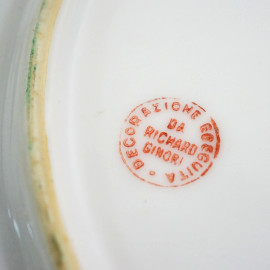 Servizio da tavola in porcellana Richard Ginori, XX secolo, a smalto bianco con decori floreali policromi, composto da: 1 zuppiera, 2 vassoi ovali, 1 vassoio tondo, 1 insalatiera, 11 piatti fondi, 34 piatti piani, 25 piattini, (difetti)