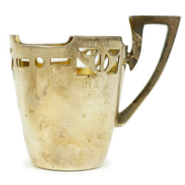 Set da liquore in argento, composto da una bottiglia e sei bicchierini, XX secolo, h max cm 16,5, peso netto gr. 318, (mancanze e difetti)