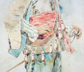 Spadaccino, acquarello su carta, cm 29,5x20, firmato F.Mola, entro corncie