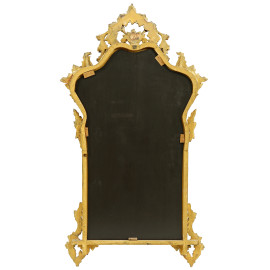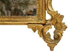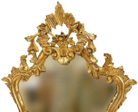 Specchiera in legno dorato con cimasa scolpita e traforata, XX secolo, cm h 102,5x56