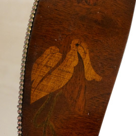 Tavolino bacheca in mogano, XX secolo, con piano apribile, gambe mosse riunite da ripiano, cm h 73x61x45