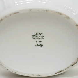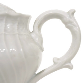 Teiera in porcellana bianca, Richard Ginori, XX secolo, manico a voluta, coperchio con presa a foggia di ortaggio, cm 16x25x12 circa