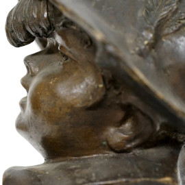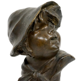 Testa di scugnizzo, scultura in bronzo brunito, base in marmo, firmato Michetti, altezza totale cm 30