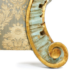 Testata di letto in legno intagliato, laccato e dorato, XX secolo, cm 95x210