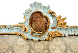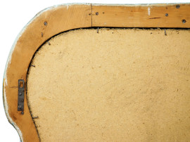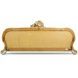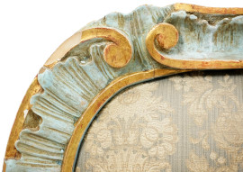 con cornice in legno intagliato a volute e motivi roccailles, cimasa centrata da medaglione raffigurante un putto con arco e fiaccola