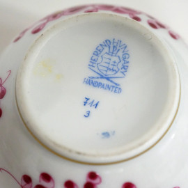 Tête-à-tête in porcellana Herend, serie “Waldstein rosa”, XX secolo, composto da 2 tazzine con piattini, 1 marmellatiera ed 1 lattiera