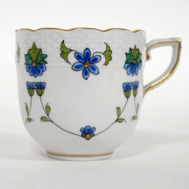 Tête-à-tête in porcellana Herend, XX secolo, con decori policromi nei toni del blu e del verde, cm h 6