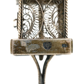 Torre delle spezie in argento con lavorazione a filigrana, punzoni Brno, 1860 circa, altezza cm 18, peso gr. 85 (difetti)