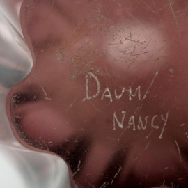 Vaso in cristallo viola, Daum, Francia, XX secolo, firmato sotto la base "Daum Nancy", altezza cm 20
