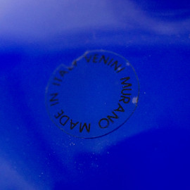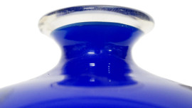Vaso in vetro incamiciato blu e bianco, Venini, Murano, XX secolo, cm h 13, recante etichetta e firma sotto la base "Venini 88"