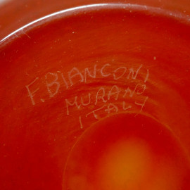 Vaso in vetro rosso e giallo, Murano, XX secolo, firmato sotto la base "F. Bianconi Murano", altezza cm 27